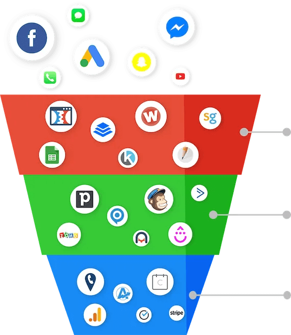 Social media marketing, email and SMS marketing, customer engagement, lead pipelines, lead generation, lead nurturing,